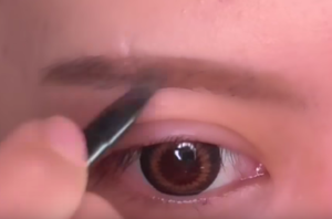 アイブローパウダーで眉毛を平行に書いていくようです。